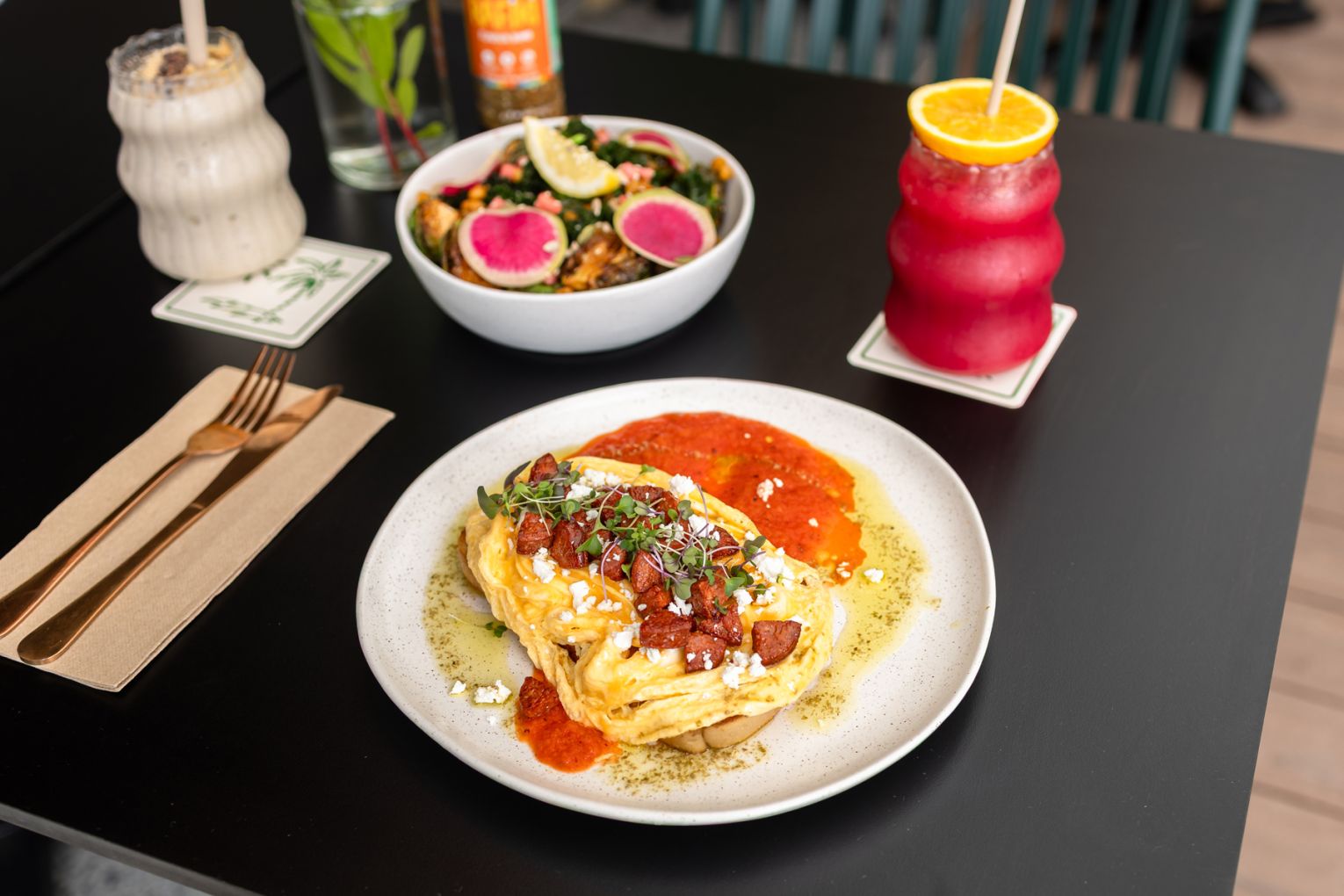 Rafiki by the Park is a relaxed, family-friendly cafe in Mermaid Waters offering a fresh, sit-down alternative to its popular sibling, Rafiki by the Sea. Open daily from 6:30 am to 2:30 pm, the venue features a breezy, park-adjacent setting with around 50 seats, perfect for casual catch-ups or laid-back brunches. The menu leans into well-executed classics – think eggs your way, bacon and egg rolls, burgers, nachos, and the cult-favourite Rockin’ Pesto Chicken Toastie – alongside smoothies, takeaway options, and coffee roasted locally by Kuky Coffee. Walk-in only, pet- and pram-friendly, and effortlessly easygoing.
