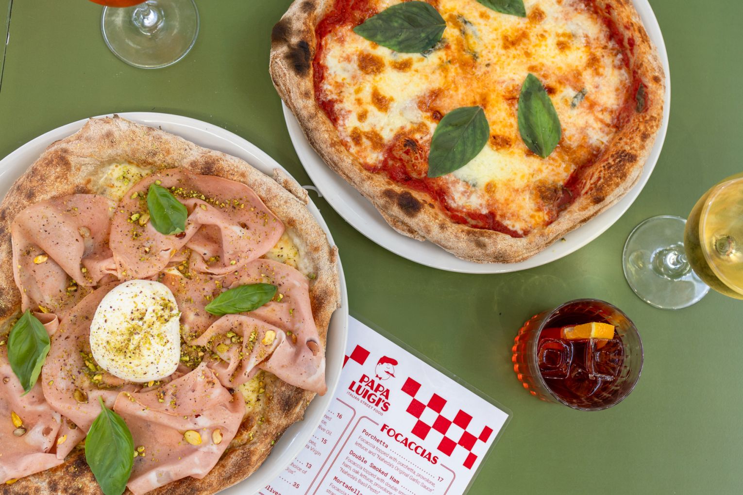 Alongside the pizzas, Papa Luigi’s also serves up freshly baked focaccia loaded with premium deli meats like double-smoked ham and the aforementioned mortadella, along with a rotating selection of dips from Naheda’s Dip House. If you’ve never tried a dip bomb, it’s worth the experience – two complementary dips, like chilli red pesto and three-olive garlic, mixed together to create something deliciously new and unexpected.