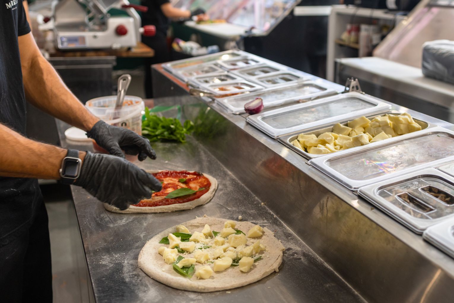 At the helm of Papa Luigi’s is Davide Turra, who has spent the last few years spinning bases at Matteo’s in Mermaid Waters. Papa Luigi’s takes inspiration from Roman-style pizza, which is slightly crispier and thinner than its Neapolitan counterpart, but just as satisfying. The dough is a carefully crafted masterpiece that takes anywhere from 48 to 72 hours to prepare and is made using imported flour from Italy. Not to get too technical, but the dough boasts a hydration rate of 72-75-percent water, giving it a light, airy texture that’s easy to digest. Thanks to the slow fermentation process, the crust has just the right balance of crunch and chew, without that heavy, doughy feeling that often comes with pizza.