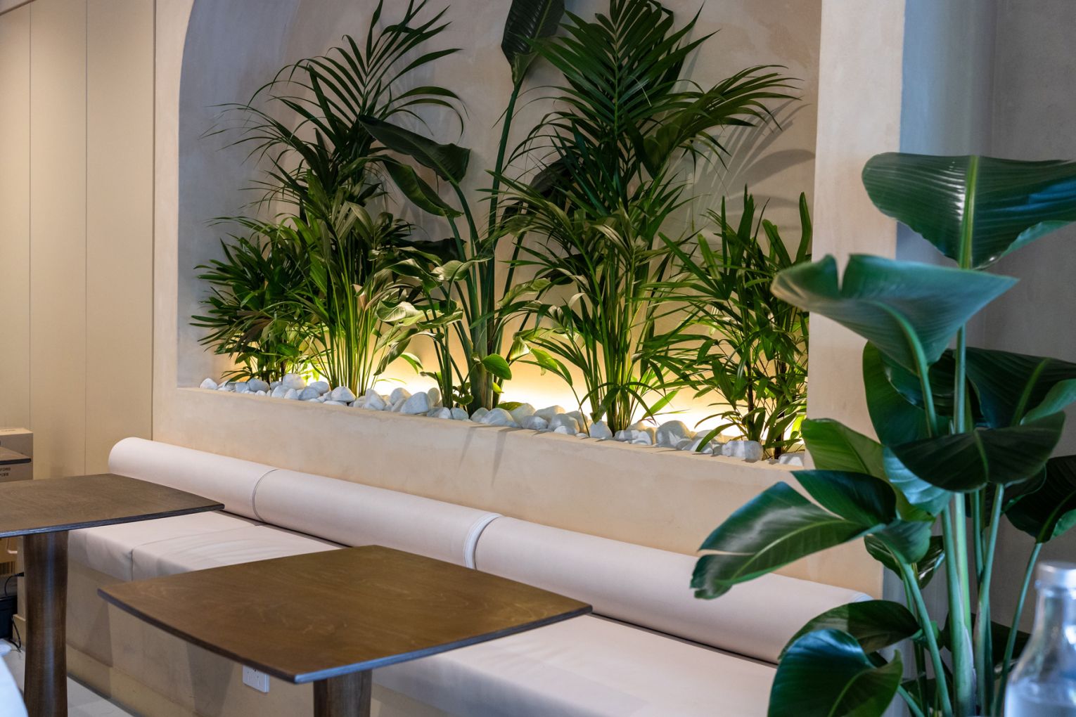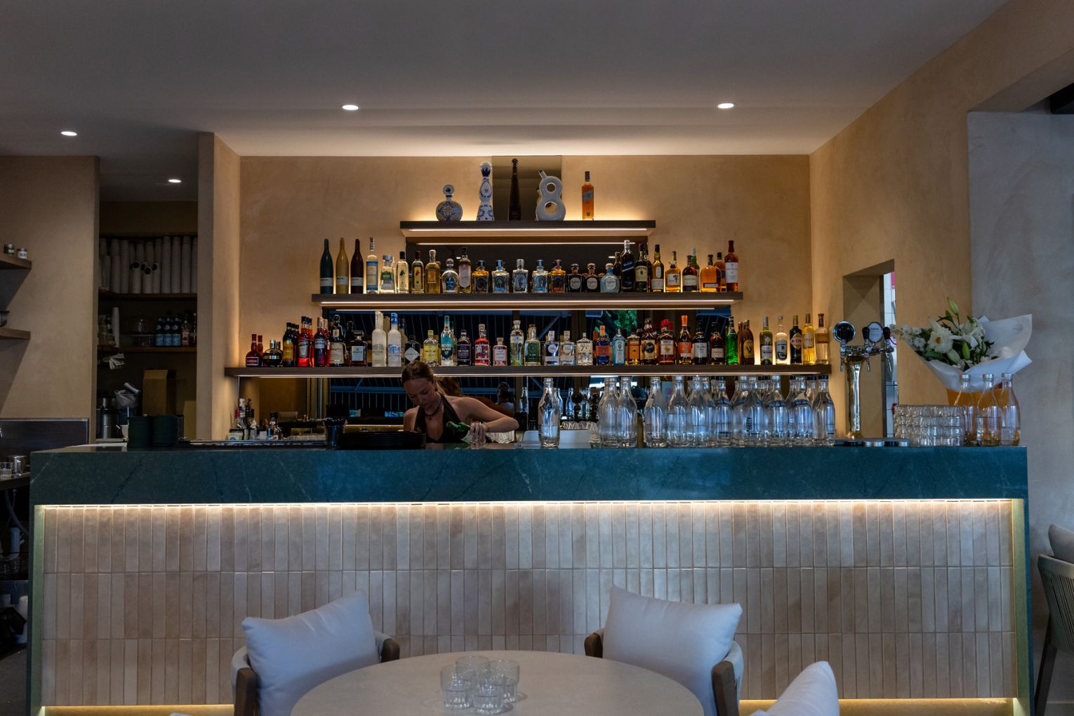 The transformation is immediate. Floor-to-ceiling, the venue has been reworked with warm, sand-toned finishes, low lighting and pockets of greenery that soften the space. It feels grounded and inviting without trying too hard. You might come in for one, but you’ll likely stay for a few.