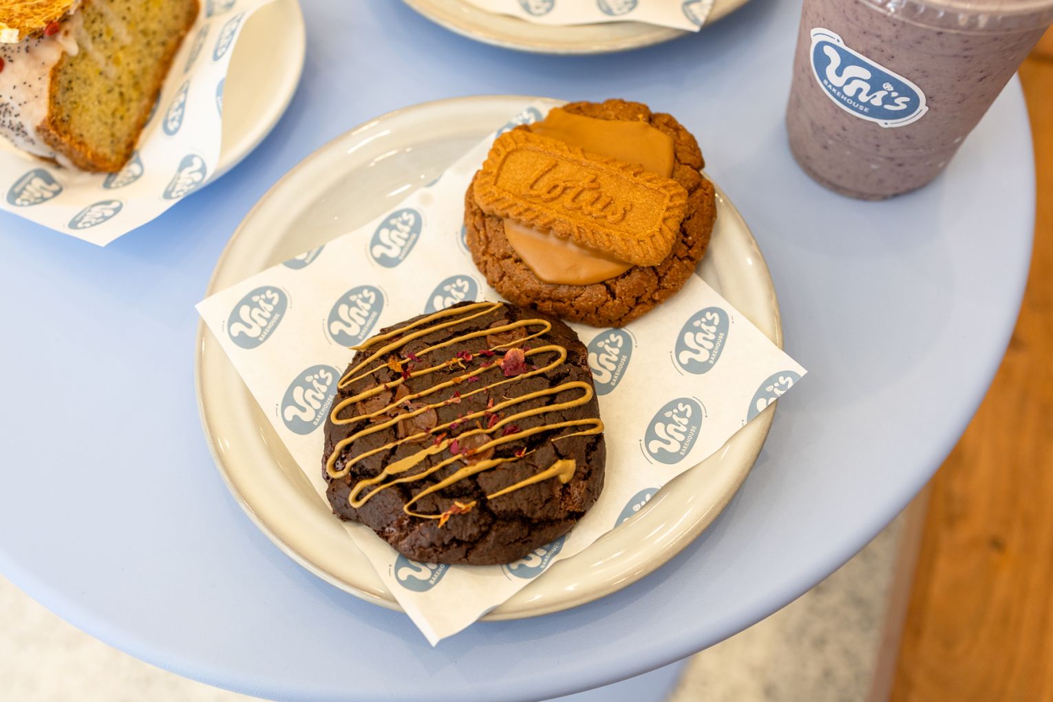 And judging from the line out the door, he’s right. The cabinet is stacked with cookies in flavours like caramel popcorn, salted peanut butter and choc, almond, and oatmeal raisin, plus brownies, banana bread and more inventive specials such as Oreo cream or even a pistachio-laced Dubai chocolate.