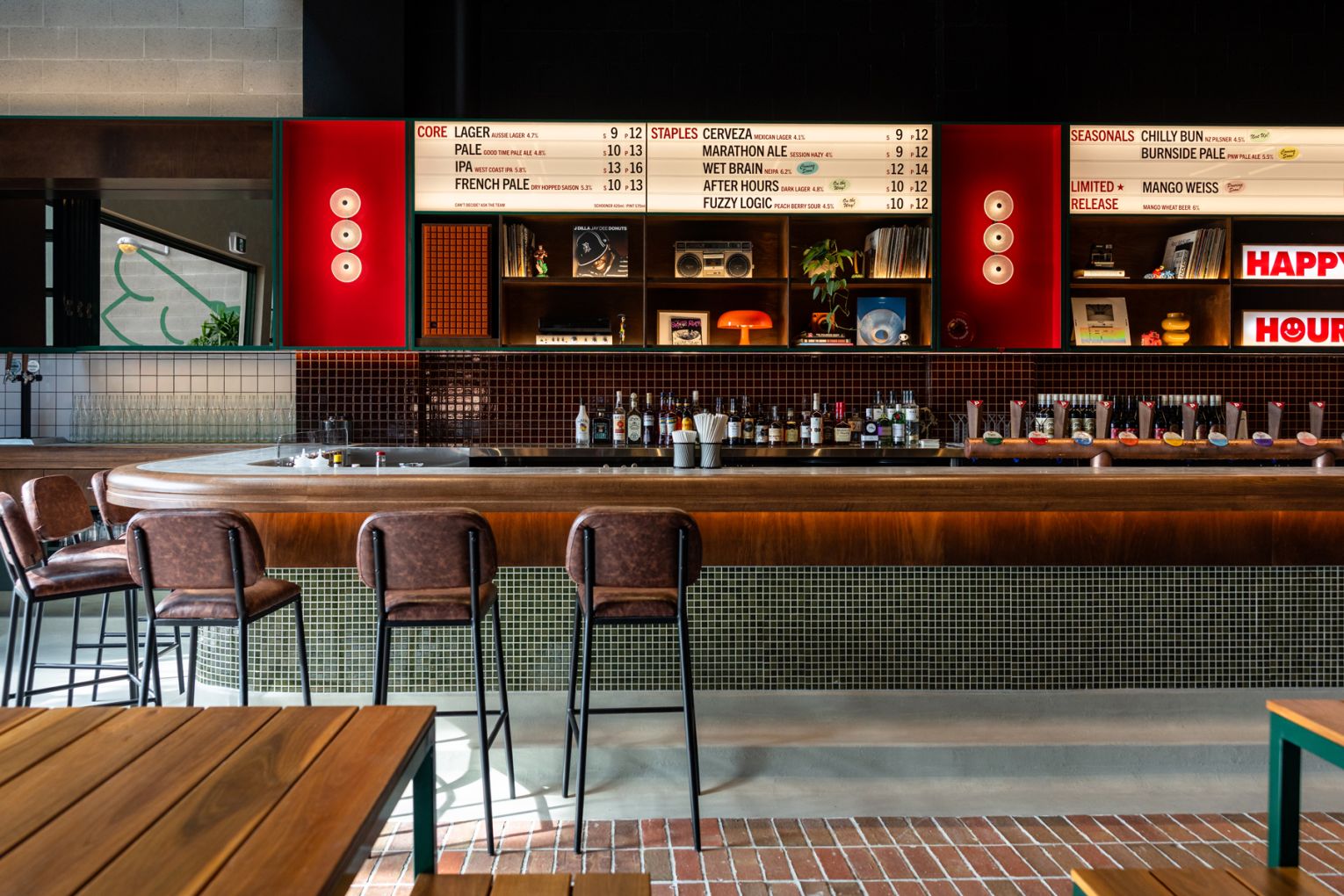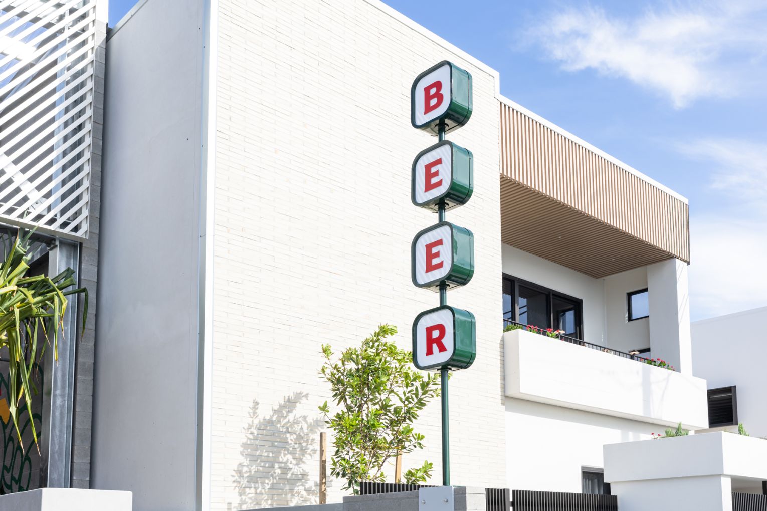Out front, a glowing BEER sign hovers above the roadside, drawing thirsty folk like moths to a flame – a bold promise of what awaits inside. The enormous venue is the newest venture from long-time mates Mitch Carlin and Pete Morris (friends longer than they haven’t been), alongside hospitality lords Aaron Wilson, Nathan Zukerman and JD – the crew behind burger-slinger Ze Pickle. This time, they’re doubling down on something different – a brewery that feels like a neighbourhood hangout first, a culinary playground second, and a showcase of local talent always.