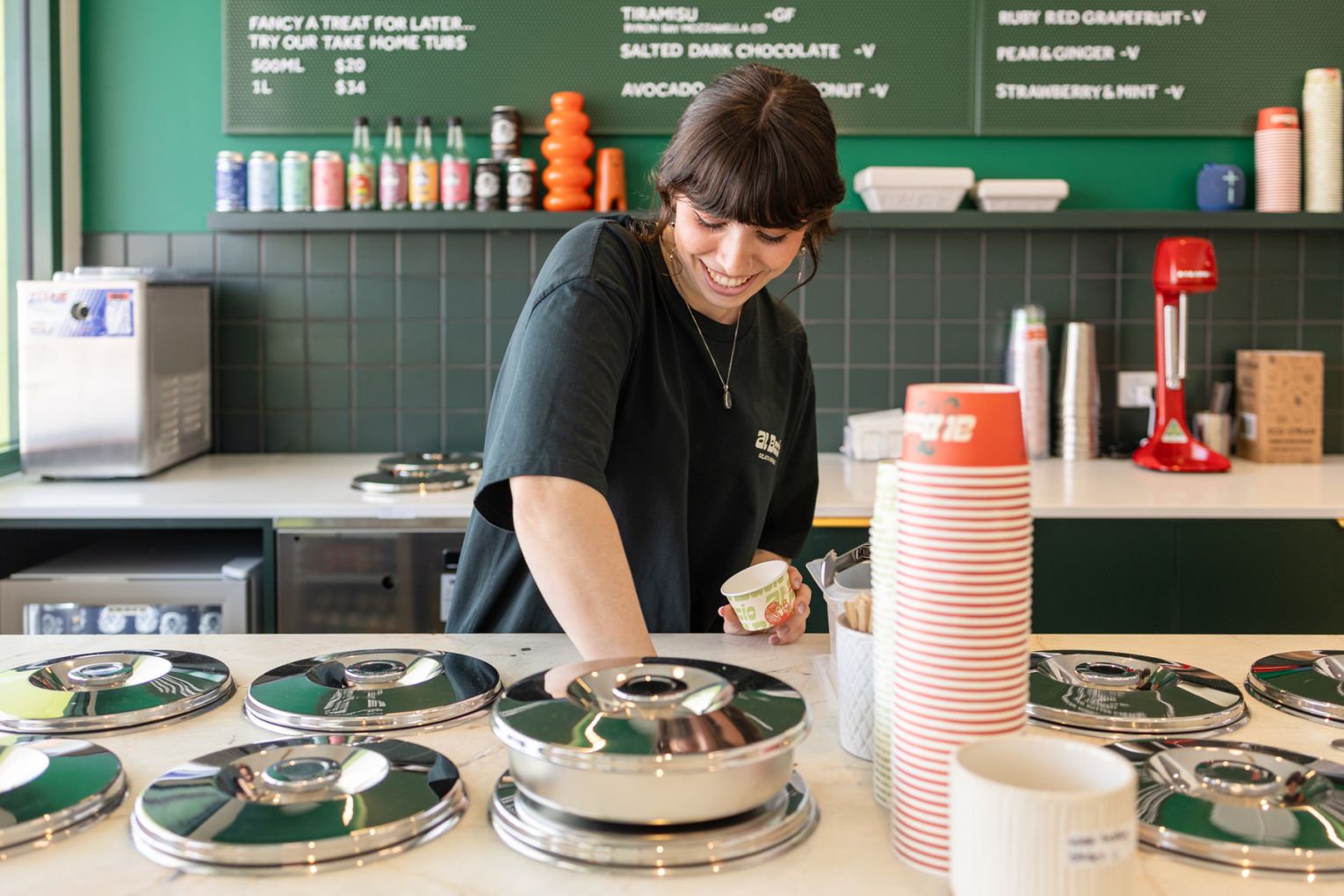 With the location sorted, the Heiningers set up shop with a focus on natural, locally sourced ingredients. Each flavour is churned fresh in-house using seasonal produce and quality suppliers – pasture-raised eggs from Limpinwood Layers, honey from ‘John the Bee Guy at the Burleigh Markets’, and mascarpone from Byron Bay Mozzarella. “We wanted to champion the community around us,” Craig explains. “Everything we can source fresh and local, we do.”