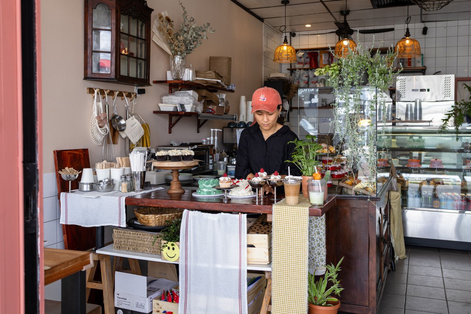 Yum Bakery is tiny, warm and unmistakably personal. Heya painted the space herself, sourced the furniture and finishes, and leaned into an antique, cosy aesthetic that feels more like a home kitchen than a commercial fit-out. Even the logo carries a family touch, designed with help from her three-and-a-half-year-old daughter, whose backwards Y remains proudly intact.