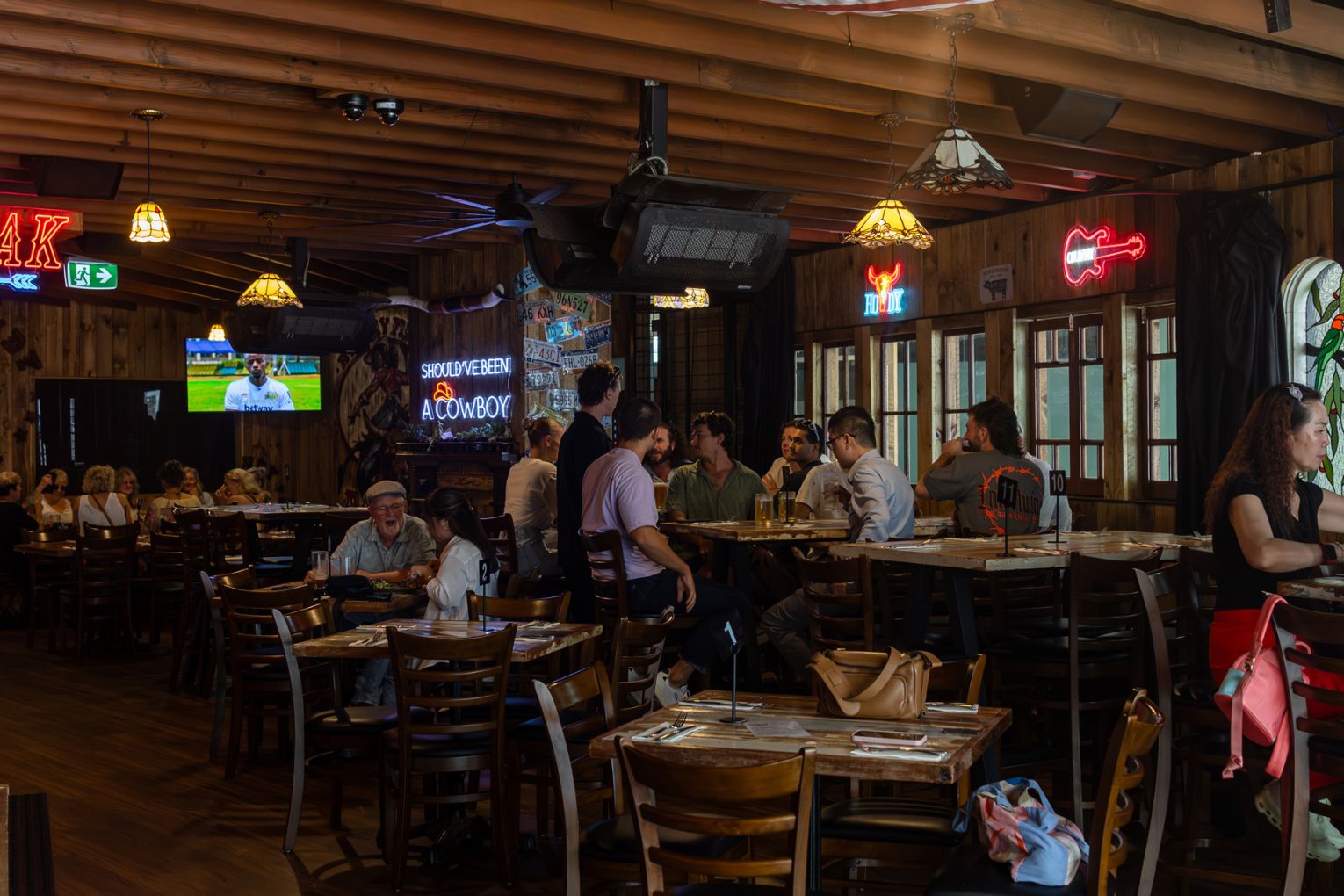 Between the neon lights, the country soundtrack and the mechanical bull bucking in the background, Rowdy Ranch isn’t going for understated. Instead, it embraces the big, slightly chaotic energy that Surfers Paradise has always thrived on. And if that energy happens to involve a tomahawk steak, a cold beer and a slightly questionable attempt at line dancing, well, that’s all part of the experience.