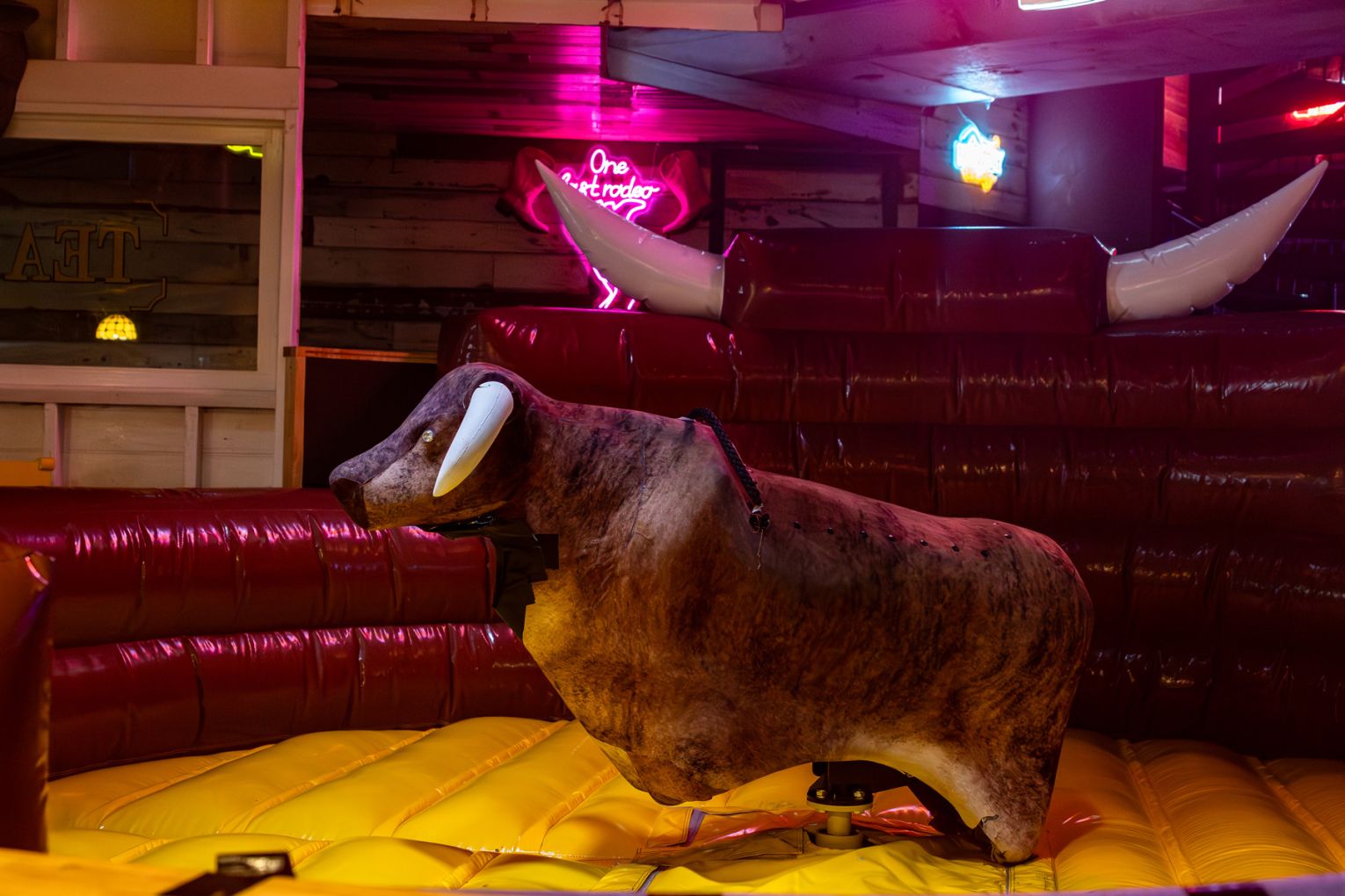Then there’s the mechanical bull. Equal parts entertainment and rite of passage, it’s quickly become the venue’s unofficial mascot, daring patrons to climb aboard and see how long they can last before gravity wins. And make no mistake, gravity always wins.