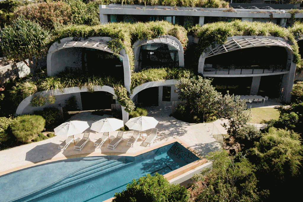 Off-grid hideaway meets luxury design with Domic Noosa, an architecturally innovative retreat tucked between Sunshine Beach’s dunes and the national park. The six-bedroom residence’s design resembles sculptural shell-like domes, with native vegetation flowing over its roofline, allowing the hotel to blend into its natural surroundings. Sustainability is integral to the Domic experience – powered by a solar and battery system, the building utilises rainwater harvesting and natural insulation through hempcrete construction for a low-impact stay without compromising on comfort. Inside, natural light allows a curated collection of Indigenous and European artwork to take precedence. The six guest suites are accompanied by a 25-metre ocean-view infinity pool, private spa with sauna, steam room, ice bath, cinema, gym and dedicated spaces for dining, entertaining and relaxing. Optional services include daily housekeeping, chef-prepared dining experiences, private boat cruises and in-house wellness rituals, with each stay fully tailored through a dedicated concierge.