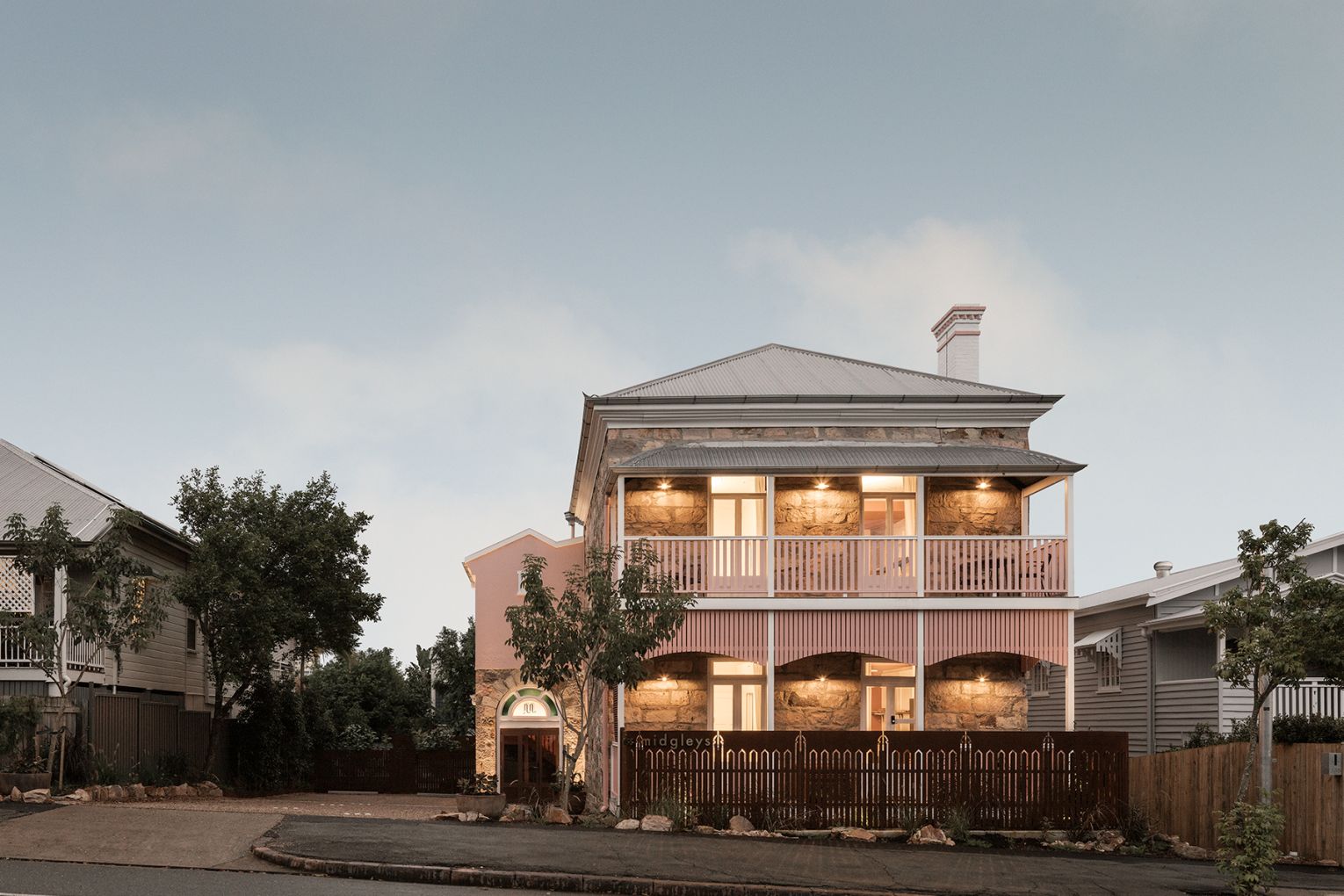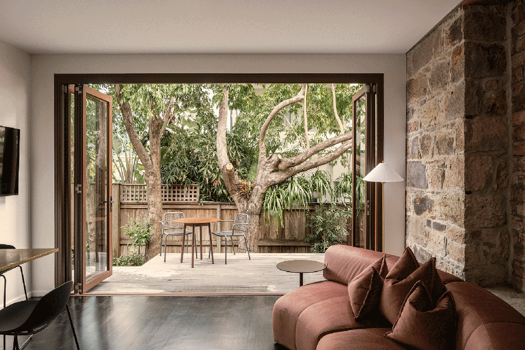 Eclectic and charmingly stylish, Miss Midgley’s boutique hotel in New Farm has lived a lot of lives. It’s been a state premier’s home, a school, an orphanage, a hospital – now it’s one of nthe prettiest place to stay in Brisbane. Named after the teacher who turned the home into a private school in 1905, Miss Midgley’s honours the building’s 160-year history and legacy throughout its storytelling and classic design. With a material palette inspired by the Brisbane stone the building is made with, tones of pink, mauve and terracotta emanate warmth and welcome while the site’s natural privacy and tranquility offer an escape just minutes from the busyness of James St and the city. Boasting five self-contained apartments all named after the original floor plans – Drawing Room, Assembly Hall, Principal’s Office – guests can book single apartments or the entire Miss Midgley’s property. The sparkling green pool, lush tropical garden and sun deck are shared among guests, and the ground floor apartments are dog-friendly so the whole family can enjoy the stay together.