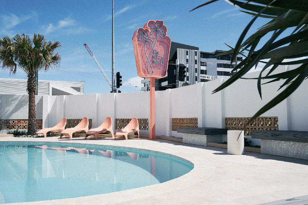 Putting a modern twist on a vintage property, Mysa Motel covers 800 sqm of Palm Beach’s prime real estate within walking distance of the suburb’s bustling restaurant scene and shoreline. Swedish for ‘cosy’, Mysa delivers on its name with seven unique bedrooms, each designed around its own colour palette and named accordingly. Each stay features a stylish ensuite, private courtyard, a complimentary Mysa welcome pack on arrival and of course, access to the Splash Club where guests can find the magnesium pool, pink sun loungers and the iconic neon sign. Formerly the Palm Trees Motel, Mysa was reimagined in 2020 with a strong focus on sustainability, incorporating recycled materials, solar power and thoughtful low-impact design throughout. Due to its iconic aesthetic and sought-after location, Mysa Motel also offers exclusive booking of the whole site, contactless check-in and a sweet elopement package for those looking for a romantic escape.